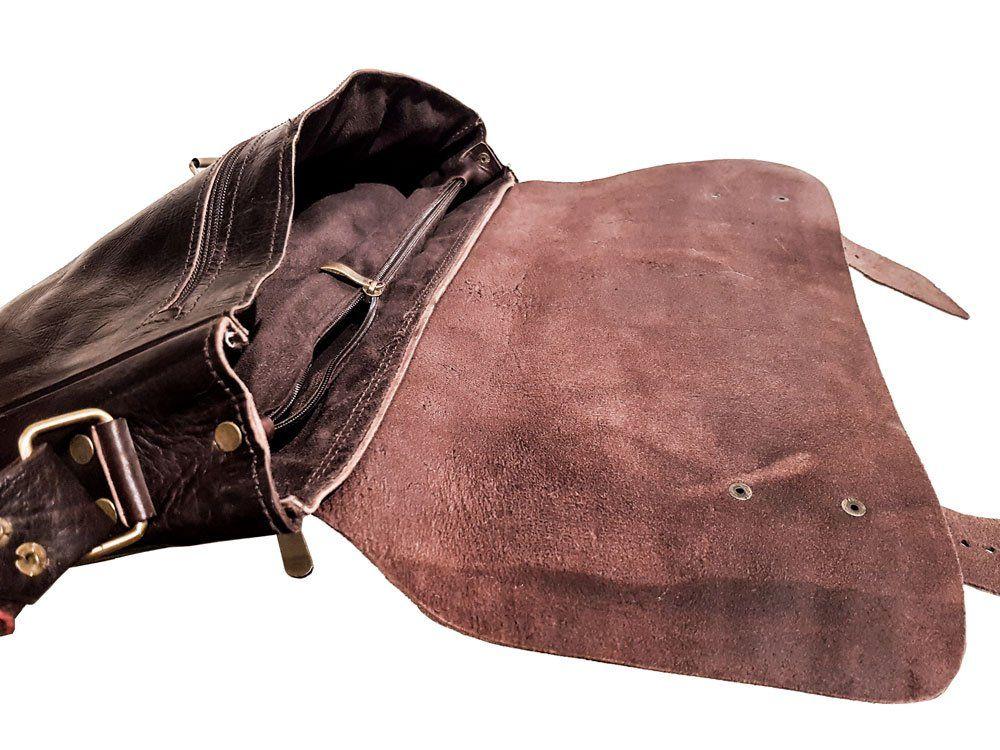 Handgjord axelremsväska i slitstarkt getskinn. Väskans mått: 37 x 27x7 cm.