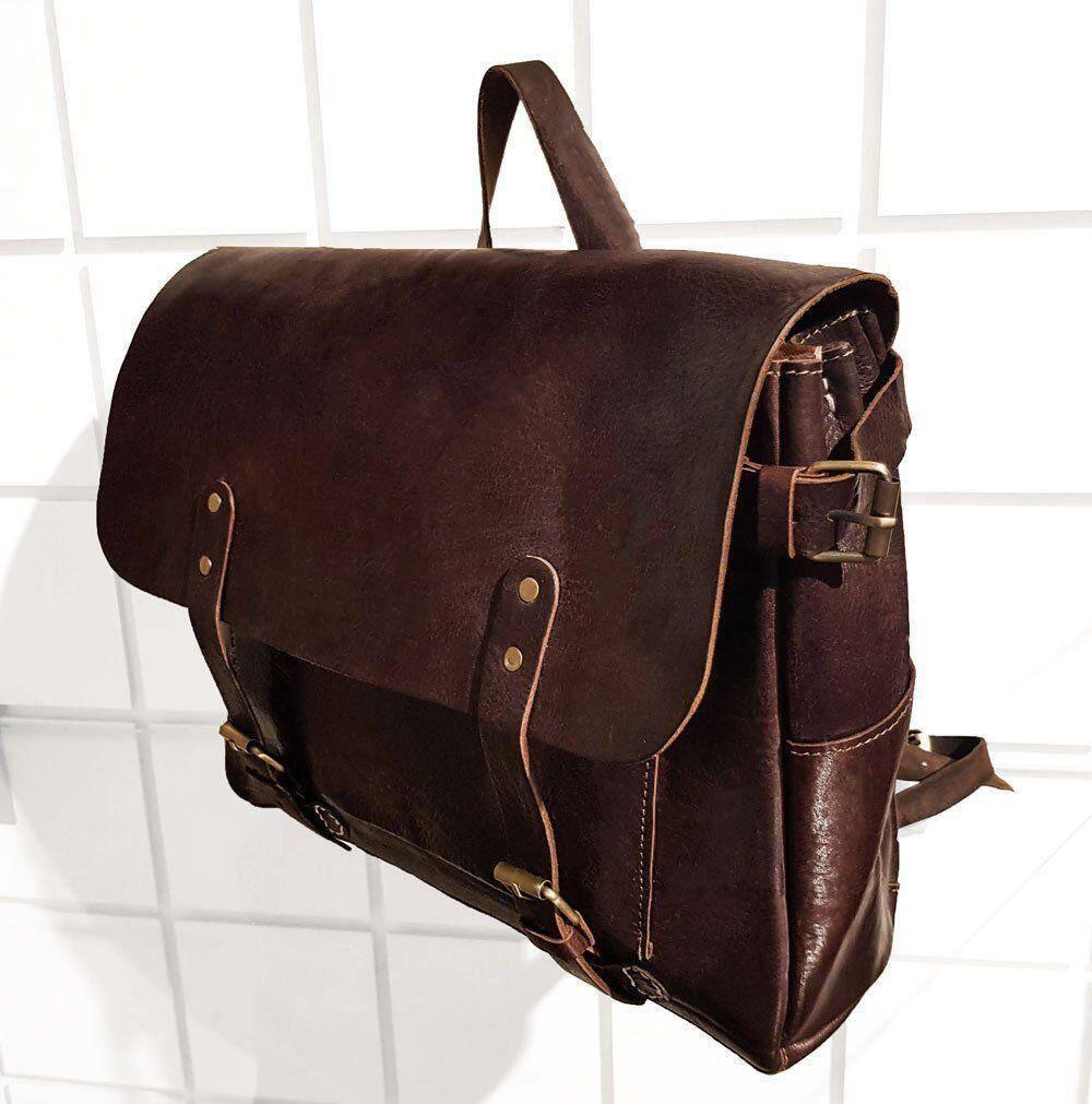 Handgjord axelremsväska i slitstarkt getskinn. Väskans mått: 37 x 27x7 cm.