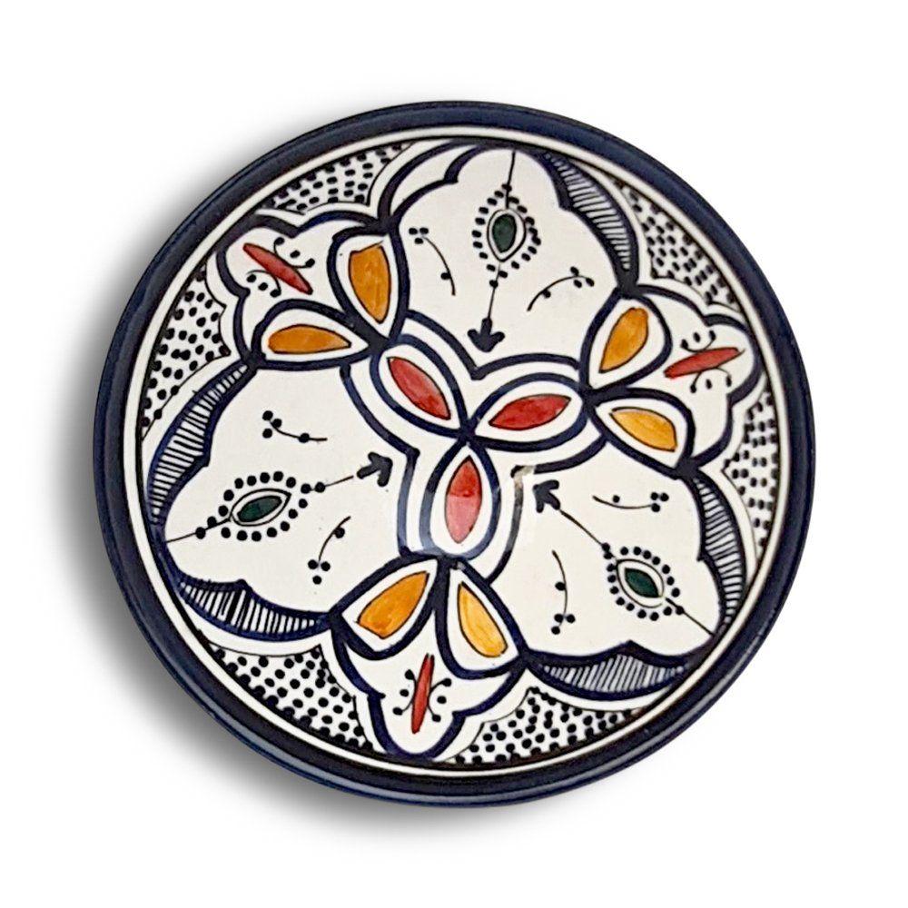 Denna skål är från Marocko från Safi den staden om är känd för den traditonella Marockansk keramik. skålar är handgjorda vilket är att de kan skiljer varandra i mönster och storlek .